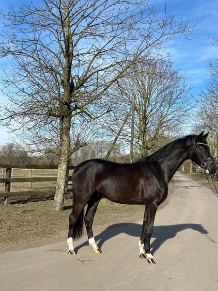 This modern black gelding stands out as a promising young dressage prospect. His elegant appearance and balanced temperament make him an ideal horse for ambitious riders who prioritize quality and willingness to perform. A genuine talent that, with the right training, has the potential to achieve great things.