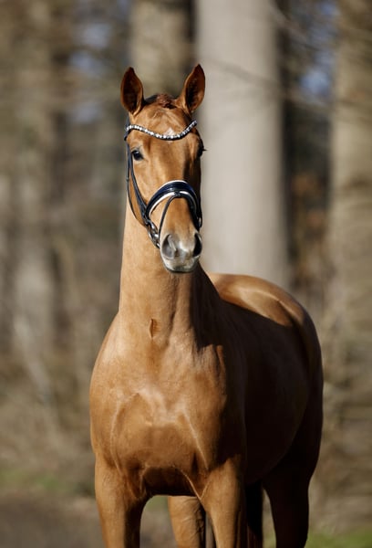 Kapital aufgemachtes Dressurpferd in schöner Typgebung und gut modellierter Aufmachung. Gut angeritten und bereits bestens balanciert, offeriert er tägliche Leistungsbereitschaft und ideale Ausbildungsqualität bei hervorragenden Reiteigenschaften und erkennbarer Eignung "für mehr". Im Umgang absolut unkompliziert und sympathisch, ohne jegliche Allüren oder Besonderheiten. Ausbilder und Sportreiter aufgepasst: In den richtigen Händen ein Nachwuchspferd für höchste Aufgaben, welches auf sich aufmerksam machen wird. Aus sporterfolgreichem Stamm und grundsolider, gerechter Aufzucht. Gute Röntgenbilder vorhanden und auf Wunsch gerne erhältlich.