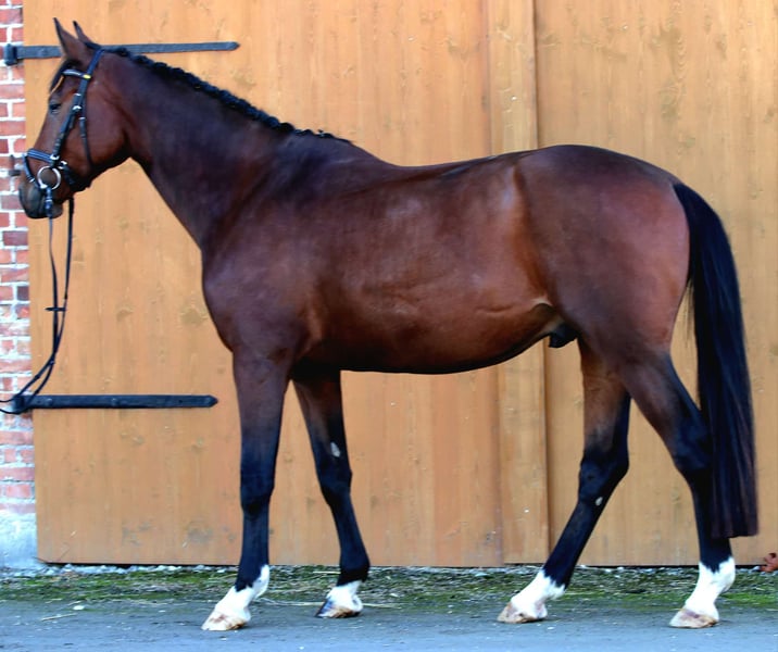 Dreamer is an absolute dream horse that leaves nothing to be desired. This beautiful bay gelding impresses with his powerful yet elegant appearance. Currently in training with a young rider, he demonstrates a strong willingness to learn. Under saddle and in handling, he is consistently calm and steady-minded. Additionally, he is equipped with great courage and confidence over jumps. He also possesses three very good basic gaits, making him suitable for versatile use. If you are looking for a talented young horse that excels in both show jumping and dressage, this gelding could be the perfect match for you. If you are interested or have further questions, please feel free to contact me. You are welcome to arrange a viewing and a trial ride! Videos can be sent via WhatsApp.