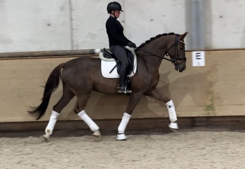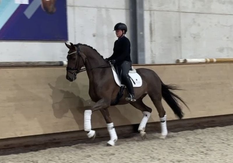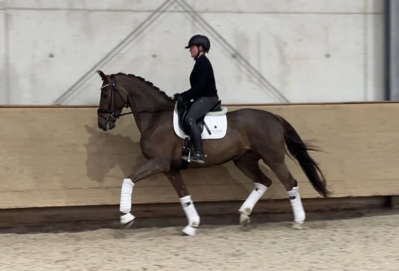- Alter: 5-jährig - Größe: 1,68 m - Ausbildungsstand: Dressurpferde A/L - Abstammung: Vaderland x Sir Donnerhall x Sunny-Boy - TÜV: gute aktuelle Röntgenbilder liegen vor Standort: Gestüt Schorer, Frankenhofener Str. 3, 86860 Jengen/Weicht Dieser junge Wallach überzeugt durch seinen außergewöhnlich braven, unkomplizierten Charakter und ist absolut amateurtauglich. Trotz seines Alters zeigt er sich bemerkenswert abgeklärt, rittig und stets kooperativ. Er ist ein Pferd, das Fehler verzeiht und seinem Reiter Sicherheit vermittelt – ideal für Amateure, Jugendliche oder auch schwächere/unsichere Reiter. Er ist altersgerecht und solide ausgebildet, zeigt bereits einen sicheren Außengalopp und befindet sich aktuell auf dem Weg Richtung Dressurpferde L. Bisher wurde er von seiner Besitzerin amateurmäßig gefördert – der sportliche Fokus stand dabei nicht im Vordergrund. Dadurch ist er mental unverbraucht und bietet noch viel Entwicklungspotenzial für ambitionierte Reiter. Dieses talentierte Nachwuchspferd für den Dressursport eignet sich sowohl für: - ambitionierte Amateure - turnierambitionierte Reiter - Jugendliche mit Unterstützung - Reiter, die ein unkompliziertes, leichtrittiges Pferd suchen Besonders hervorzuheben ist sein superbraver und ausgeglichener Charakter: - absolut unkompliziert im täglichen Umgang - brav beim Putzen und Satteln - kennt Führmaschine, Koppel und Paddock - verträglich mit anderen Pferden - geht problemlos ins Gelände Ein echtes Verlasspferd mit Sportperspektive. Aktuell ist das Pferd vorne beschlagen und wurde regelmäßig geimpft und entwurmt. Der Verkauf erfolgt schweren Herzens aus Zeitmangel. Gesucht wird ein dauerhafter Platz mit passendem Zuhause, gerne mit Turnierambitionen, wo er weiter gefördert wird.