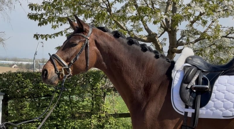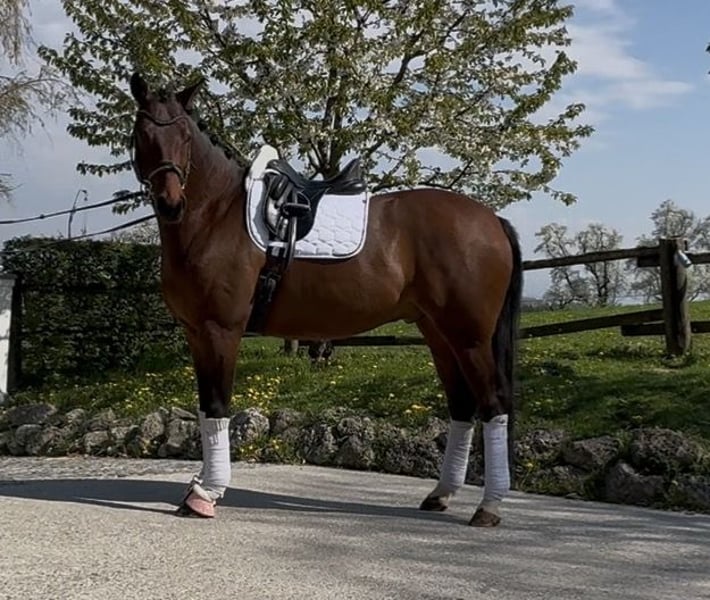 Selling a charming 5-year-old gelding by Despacito x Belissimo M. He was gently worked over the winter and is very eager to learn, always mentally alert. For more information, please feel free to contact me at +43 664 4909091.