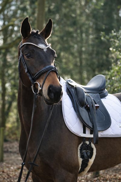 FLASH MICH - Franziskus x Fürst Frederick x Roboter. Zijn naam is programmaties. Eigenlijk wilden we dit droompaard behouden, maar door de tijdsinvestering van onze klantenpaarden kunnen we hem helaas niet de aandacht geven die hij verdient. Daarom zoeken we nu, met pijn in ons hart, een ultiem goede plek voor hem. Deze zelfgefokte 5-jarige ruin heeft alles in zich dat dressuurliefhebbers hart sneller doet kloppen. Het karakter is een 12/10, met drie keer meer dan gemiddelde basisgangen, gecombineerd met een ongelooflijke lichtvoetigheid en een prachtig, bijna schilderachtig uiterlijk. Als veulen heeft hij al al onze verwachtingen overtroffen, werd hij kampioensveulen en kreeg hij de gouden veulencertificering van het Westfaalse paardenstamboek. Flash zou twee jaar geleden op de merriekampioensverklaring worden gepresenteerd, maar helaas gooide een röntgenonderzoek roet in het eten omdat hij een chip in zijn knie heeft. Deze is operabel en veroorzaakt klinisch geen problemen. Desalniettemin willen we hem vanwege deze diagnose onder de waarde verkopen, in een liefdevol en passend thuis. Flash is ook het ideale paard voor pony-omzetters of herintreders. Hij is absoluut mentaal klaar, vergevingsgezind voor fouten, doet alles mee en wil altijd gefallen. Iedereen die hem tot nu toe heeft gereden, was overtuigd van hem. Een jonge paard dat gewoon plezier geeft.