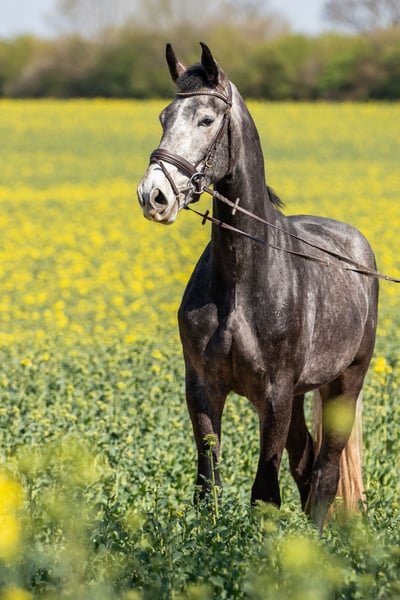 Zum Verkauf steht ein 5-jähriger selbstgezogener Schimmelwallach. Er ist ein großrahmiger, typvoller Wallach mit einem stabilen Fundament und drei guten Grundgangarten. Er wurde 3-jährig angeritten und zeigte sich hier brav und unerschrocken. Anschließend durfte er bis Mitte letzten Jahres sein Jungpferdedasein genießen. Ein leichter Unterbiss ist vorhanden, der ihn jedoch in keiner Weise beeinträchtigt und kaum auffällt. Ein Züchter-TÜV liegt vor. Dabei wurden zwei Chips festgestellt, die derzeit symptomlos sind und laut tierärztlicher Einschätzung keine Einschränkung darstellen. Der Verkauf erfolgt schweren Herzens aus Zeitmangel. Wir wünschen uns ein liebevolles Zuhause, in dem er weiter gefördert wird. Weitere Videos können auf Nachfrage zugeschickt werden.