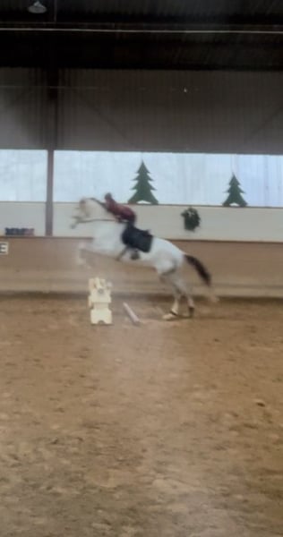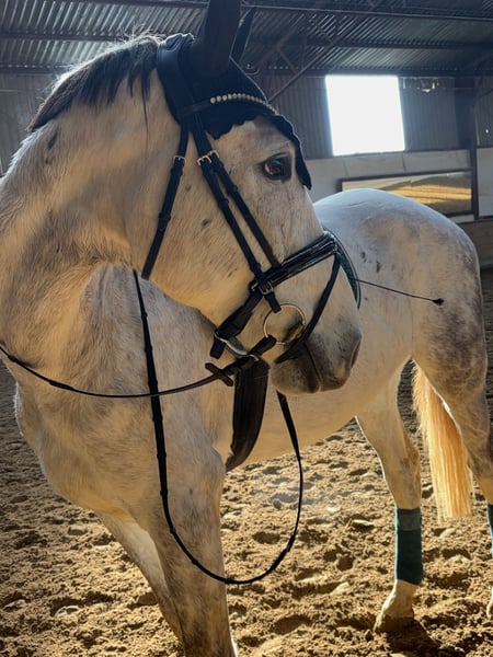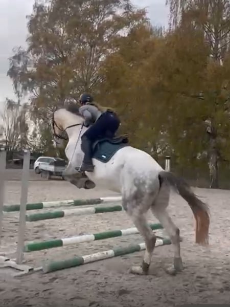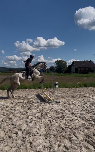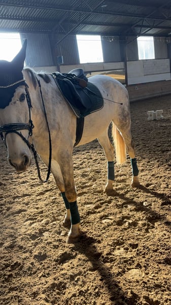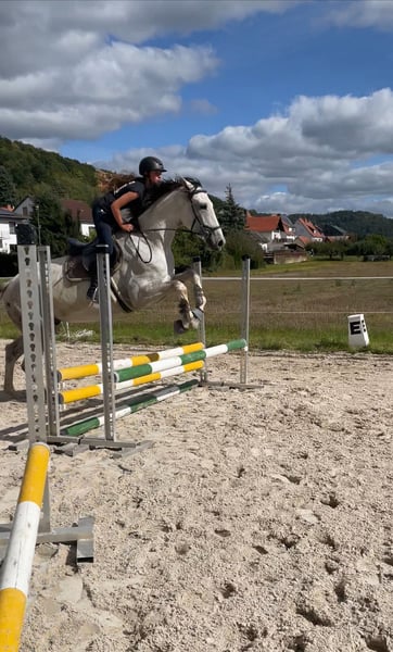 Dieser vermögende Schimmelwallach, von Cornets cero x Landos sucht einen neuen Besitzer. Er besticht durch sein unglaubliches Vermögen, seinen absolut tollen und kopfklaren Charakter, seine große Galloppade mit viel Übersetzung und seine hohe Rittigkeit mit grade einmal 4 Jahren. Für ihn ist es Routine zum Auswärtstraining zu fahren und bewältigt die Parcours gelassen als hätte er noch nie etwas anderes gemacht. Lässt sich super fein in Anlehnung reiten, springt Parcours bis 1,20m momentan arbeiten wir vermehrt am Muskelaufbau. Landet meistens richtig und mit angenehmen, ruhigem Temperament ausgestattet. Fein am Schenkel und Zügel, lässt sich über den Schenkel wenden. Dressurmäßig sind ihm Rahmenerweiterungen,Volten, schenkelweichen, Außengallopp und Übergänge bekannt und werden aktuell verfeinert. Er hat eine große Versammlungsvereitschaft. Kennt Gelände,Longieren, Kinder, geht brav beim ersten Anlauf auf den Anhänger und kennt den Schmied. Turnierkonform geimpft. Wir können uns ihn sowohl im Sportbereich unter ambitionierten oder auch Amateurreiter vorstellen, er wäre aber auch ein treuer Begleiter alsMädchenpferd. Kinder geeignet und absolut kopfklar. Abstammung Cornets Cero (cornet obolensky)x Landos. Er bringt das Vermögen und die Galloppade von cornetobolensky und den Charakter von Calido l mit. Wir geben ihn nur ab weil es nicht perfekt passt. Altersgerecht ausgebildet und startklar für die Saison 2026 Bei Interesse gerne über das kontaktformular aber bevorzugt über WhatsApp unter +49 171 9086565 melden. Für weitere Fragen stehen wir zur Verfügung weitere Fotos oder Videos können auf Anfrage versendet werden.