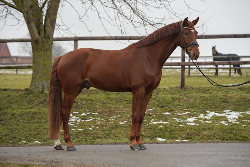 Vamos is an excellent schoolmaster for a seasoned rider. Equipped with three good gaits and a pleasant forward movement, he makes daily work enjoyable. Due to his size, he has had the opportunity to mature calmly and consistently demonstrates a positive attitude and motivation. He is still owned by his breeder and is now ready for new challenges. A recent radiological examination, including back and neck, is available.