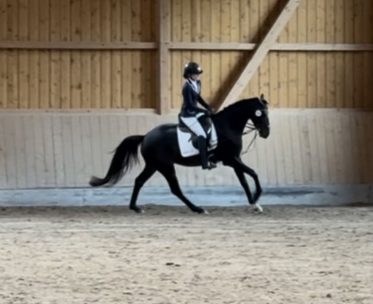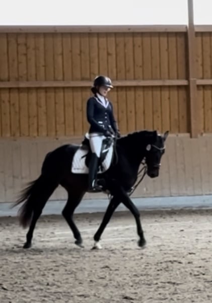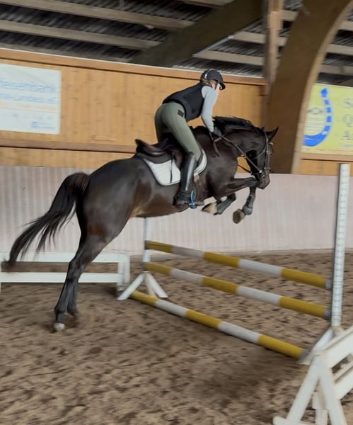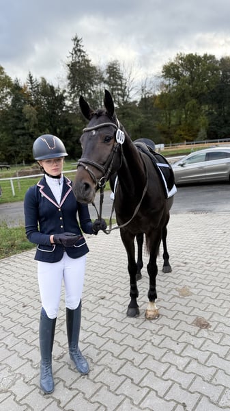 Ultra is a gelding to fall in love with. Affectionate, curious, light-footed, and motivated, he always shows his best side. His brother from the same mother is currently successful in M-level show jumping. He is an intelligent horse that loves to be cuddled and spoiled. He enjoys walks, petting, and likes children. When riding, he is light-footed and calm. He is easy to ride through the neck. He is currently making his first jumps under saddle. He has already placed highly in various competitions in rider classes and is familiar with both outdoor and indoor tournaments. He can be tried out for riding. Like all offspring of United Way, he is tough and eager to perform. Trade possible!!