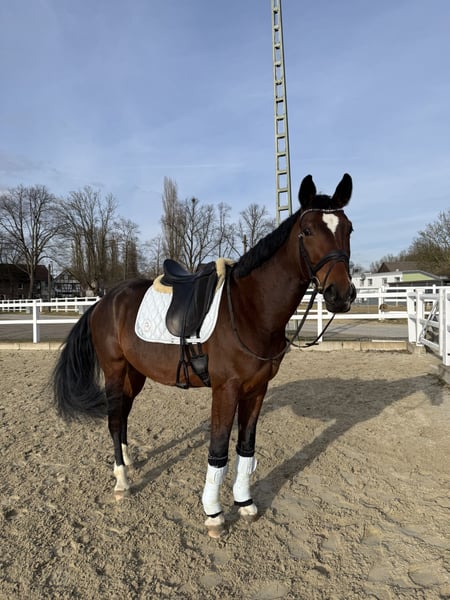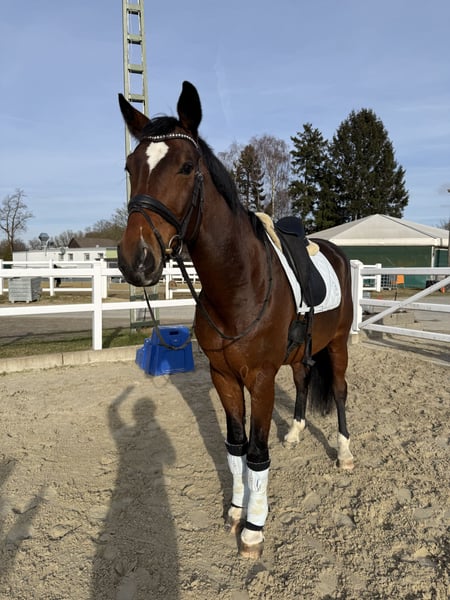 Zum Verkauf steht unser hübscher 6-jähriger Wallach von First Deal aus einer Dankeschön Mutter. - First Deal x Dankeschön - Geb. 2020 - Westfale - Wallach - 168 cm - Dressur A-fertig (L-Lektionen begonnen) Durch seine schönen Grundgangarten ideal für die Dressur. Er ist sicher im Gelände, sowohl alleine als auch in der Gruppe. Er ist sehr brav und unkompliziert im Umgang, ebenfalls schmiede- und verladefromm, ein TÜV (aus November 2024) liegt vor. Ein echter Partner für ambitionierte Reiter: zuverlässig, nervenstark und dennoch mit genügend Temperament, um Freude am täglichen Training und an sportlichen Zielen zu bereiten. Abgabe nur in beste Hände. Eine pferdeerfahrene, liebevolle Familie ist Voraussetzung.