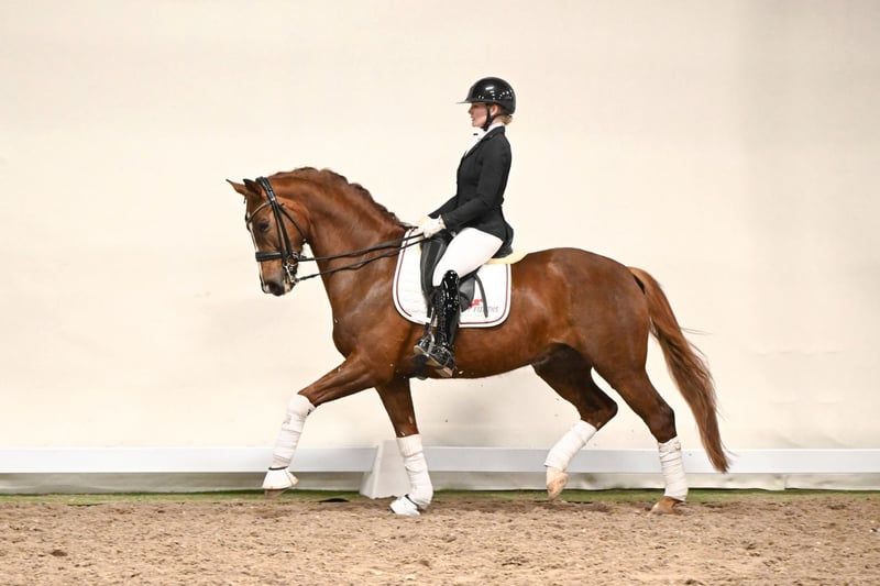 Fly High is a seven-year-old gelding full of charm, willingness to perform, and elasticity. He has already been successfully presented in Dressage M competitions and is showing promising progress in higher-level movements during training. His motivation, pleasant temperament, and exemplary attitude make him a partner who brings joy to every rider. Fly High is attentive, eager to learn, and easy to ride—a horse that approaches new challenges with enthusiasm. His pedigree is equally impressive: his sire, Fürst Samarant, was one of the most sought-after premium stallions at the NRW main licensing. He completed his four-year-old stallion performance test in Münster-Handorf as the top four-year-old dressage stallion in Germany, earning top scores of 9.0 for canter, walk, and rideability. Today, he competes successfully up to Intermediaire I and impresses not only in sport but also as a sire. The dam’s sire, Fleurop, a proven Westphalian state stallion from the Florestan I x Weltruf – Frühlingstraum II line, completes Fly High’s pedigree. He is known for elasticity, willingness to perform, and excellent gaits—qualities that Fly High embodies in outstanding fashion. Fly High combines everything one could wish for in a modern sport horse: rideability, motivation, elasticity, and a strong pedigree. A talented partner for ambitious riders, equally suited for a successful competition career and the development of higher-level movements.
