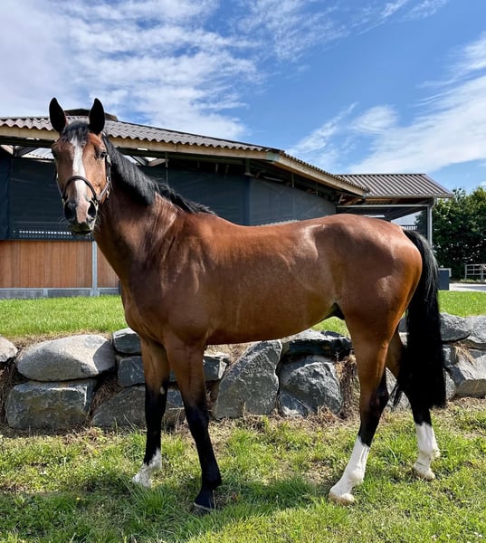 7-jähriger brauner Wallach von Dallas VDL x Last Liberty (Lord Liberty) Springpferd, sportlich eleganter Typ. Brav im Umgang, Springpferde L platziert.