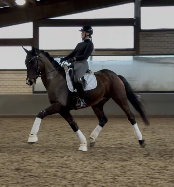 This handsome 8-year-old gelding is looking for his forever person. He is currently at a solid novice level and will continue to be promoted. He is very eager to learn and definitely has a lot of potential. Zaphiro has three very good gaits and is very pleasant to ride under saddle. He needs some time to build trust with his rider, but once that is established, he rewards this with great rideability and reliability. In handling and riding, he is generally well-behaved, though occasionally a bit unsure. Due to his uncertainty, he is not suitable for beginners but is very well suited for a calm, sensitive rider who can provide him with confidence. Trial riding: A fee of €30 will be charged for the trial ride, which will be deducted from the purchase price if successful. The saddle can also be purchased at an additional cost. Feel free to contact me via WhatsApp or phone. 01578 3629659