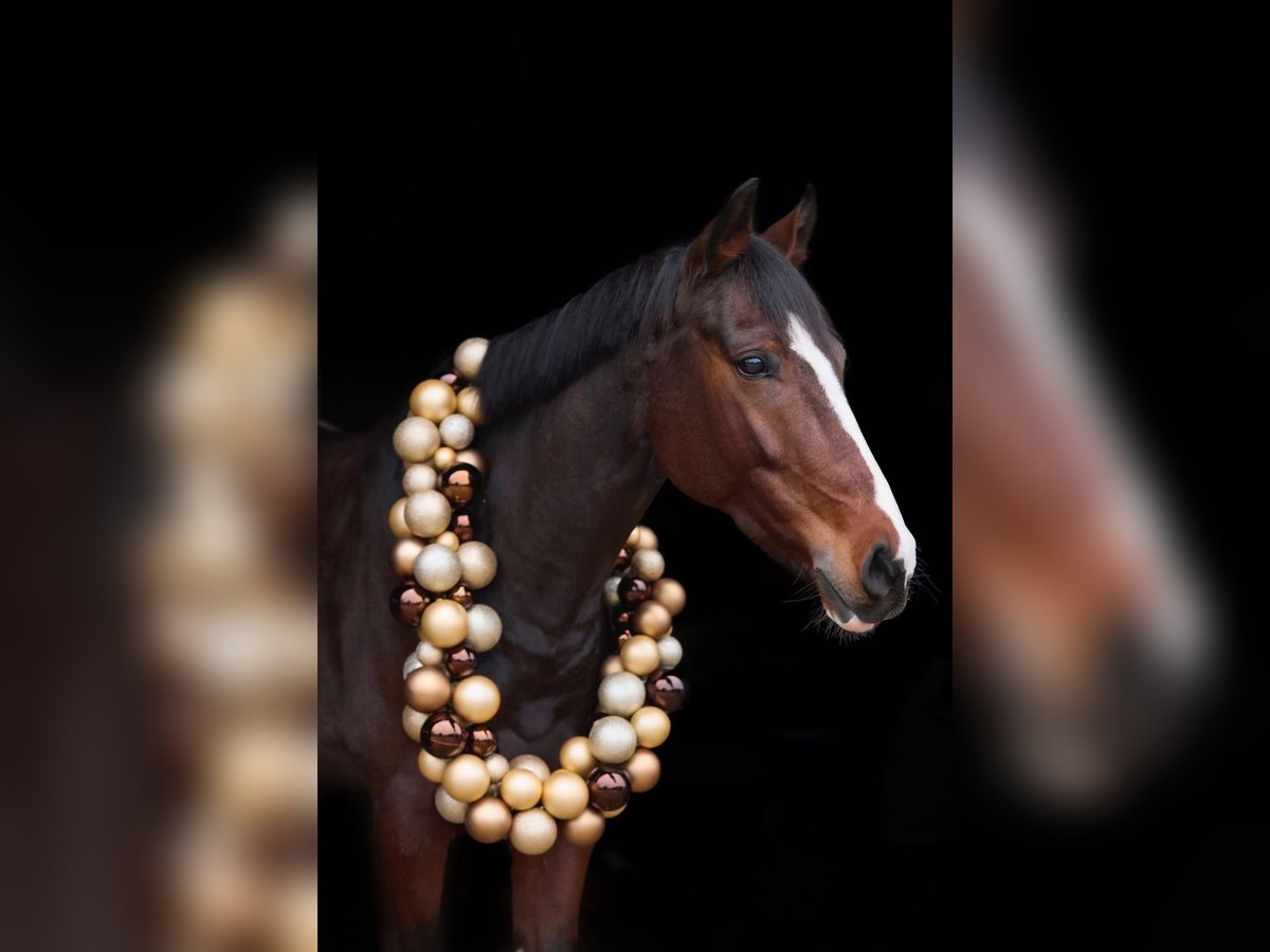 For sale is an attractive dark bay gelding with an approximate height of 16.1 hh. He impresses not only with his appealing appearance but especially with his friendly temperament and positive attitude towards work. Under saddle, he consistently demonstrates motivation and effort in both dressage and jumping. His movements are comfortable to sit, providing a smooth riding experience for his rider. Thanks to his balanced nature, he is well-behaved and reliable both during riding and in daily handling. This gelding is an excellent family horse and ideal for riders seeking a dependable partner. He offers great potential for amateur riders and brings a lot of joy to his rider.