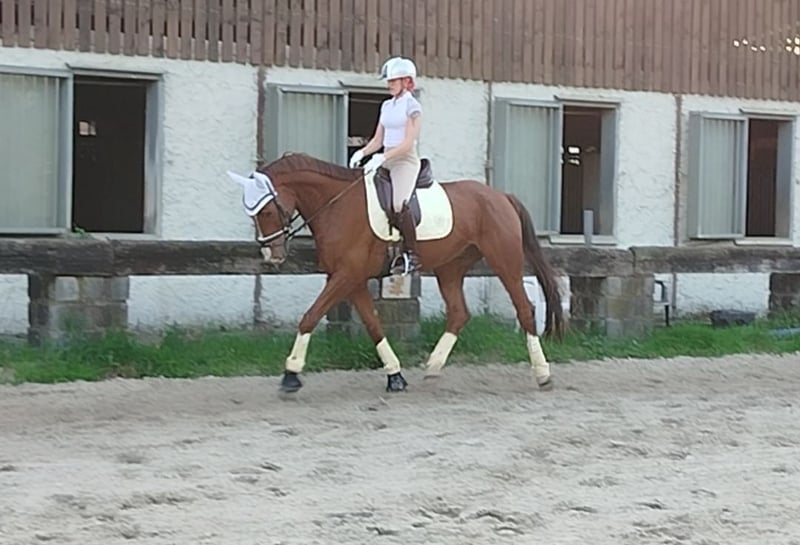 Feiner Nachwuchswallach sucht erfahrenen Reiter ideal als Juniorenpferd /Familienwallach Bei ernstgemeintem Interesse bitte ausschließlich telefonisch melden 01773006222. Für meinen 7-jährigen, schicken Westfalen-Wallach Abstammend von Adorator suche ich einen einfühlsamen konsequentern Reiter der ihn ein absolutes Traumzuhause mit viel Auslauf bieten kann🏆 Mein Wallach wurde bis October ordendlich in Dressur und Springen geritten und hatte Anfang Oktober eine kleine Chip OP.Nun ist er wieder fit befindet sich seit Mitte Dezember wieder im Longenaufbautraining und wurde bis her erst 3x wieder geritten.Leider folgte dann meine Erkrankung so das ich derzeit nicht reiten darf /kann und vorraussichtlich mit viel Pech noch länger ausfallen werde, daher auch der Grund der Bestandsreduzierung. Mein Wallach Verfügungt über 3 sehr schwungvolle GGA und ist sehr motiviert zu arbeiten. AN der Longe auch unter Reitanfängerinnen zeigt er sich steht's anständig nach der OP. Zum Pferd: 7 Jahre, Wallach Westfale, ca. 170 cm Preisklasse 25.000€VB Platz vor Preis (unter Wert) Amazing ist Dressur im Training auf Anfang L Niveau ausgebildet und A sicher-fertig. 2024 mehrfach mit mir und einer Juniorin (14 Jahre) von Reiter Wb-A siegreich und platziert gewesen.Die ersten L-Lektionen haben wir bereits Im Sommer 25 begonnen und den Schwerpunkt im Jahr 2025 im Springen gelegt und ihn somit E-Parcourfertig gemacht . Amazon ist Vielseitig veranlagt: Dressurarbeit( auch unter jüngeren) kleine Parcours sowie auch Geländeritte (alleine und in der Gruppe) bereiten ihn große Freude . Im täglichen Umgang zeigt er sich sehr brav, nervenstark und menschenbezogen – ein echter Schmusebär. Selbstverständlich ist er schmiede- und verladefromm, ein aktueller TÜV (Mai 2025) liegt vor. Er bringt eine schöne Mischung aus Zuverlässigkeit und angenehmem Temperament mit und eignet sich besonders für Reiter, die fein, ruhig und pferdegerecht arbeiten und Freude daran haben, ein junges Pferd mit weiterzuentwickeln. Eine Liebevolle konsequente Reiterin ist mir sehr wichtig .Amazing ist kein Gewichtsträger. Gerne kann er auch im Rahmen einer Teilverfügung (ausschließlich Anlagengebunden) vorerst ausprobiert werden, da ein Verkauf nur bei einem Perfekten Match in Frage kommt . 📍 Standort: 45279 Essen