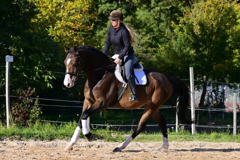 ⭐️ S.: Berlino x Balou du Rouet - Cassini I, Capitol I, Grannus, Contendro I, Contender ⭐️ Nato nel 2017 ⭐️ Stallone ⭐️ Altezza al garrese 1,76 m ⭐️ Compatibile con il branco ⭐️ Facile da caricare in trailer ⭐️ Facile da ferratura ⭐️ Montato da bambini ⭐️ Gentle in campagna (in gruppo) ⭐️ Würzburg ⭐️ Trasporto disponibile a pagamento ⭐️ Possibilità di addestramento ⭐️ Certificato di salute completo circa 800 € ⭐️ In incarico Un cavallo molto dolce, di tipico formato da salto ostacoli, con un disegno eccezionale. Il stallone è estremamente mansueto nel maneggio e può essere facilmente gestito anche dai bambini. Sotto la sella si comporta con delicatezza. Mostra impegno ed è molto grato e visibilmente contento di un'andatura armoniosa. Richiede un po’ di allenamento muscolare per mantenere un galoppo raccolto e duraturo. Anche lui è stato montato da bambini e principianti, e durante una prova di volteggio si è dimostrato molto impegnato e ha tollerato con molta pazienza e senza problemi anche lunghe sessioni, nonostante la mancanza di formazione specifica. In campagna è un po’ insicuro se montato da solo, ma con un altro cavallo è completamente coraggioso e tranquillo. Rispondiamo solo a richieste serie e motivate. Non prendiamo in considerazione richieste irriverenti. Per la prova di monta chiediamo 25 €, che verranno scalati all’acquisto. I principianti devono essere accompagnati da un istruttore esperto. Il prezzo aumenta in base all’ulteriore addestramento.
