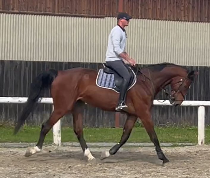 Big Bambi ist ein 7-jähriger Wallach mit einem imposanten Stockmaß von 1,84 m und einer ebenso beeindruckenden Ausstrahlung. Aufgrund seiner Größe und seines späten Wachstums wurde er schonend und mit Bedacht erst im Alter von 4 Jahren angeritten. Er zeigt sich im täglichen Umgang absolut brav, menschenbezogen und unkompliziert. Ob beim Putzen, Satteln oder im Stall – Big Bambi überzeugt mit seinem ausgeglichenen Wesen. Auch unter dem Sattel präsentiert er sich stets arbeitswillig und zuverlässig. Mit seinen Artgenossen ist er sehr verträglich und sozial. Auf dem Platz zeigt er Freude an der Arbeit, besonders das Springen bereitet ihm großen Spaß. Gleichzeitig bringt er durch seinen harmonischen Körperbau und seine Bewegungsqualität beste Voraussetzungen für die Dressurarbeit mit. Big Bambi ist ein Pferd mit viel Potenzial, das seinem Reiter Freude bereiten möchte – ein echter Partner für ambitionierte Freizeitreiter oder den sportlichen Einsatz. Schweren Herzens wird er nur in allerbeste und fördernde Hände abgegeben. Ein Platz mit Familienanschluss und entsprechender Wertschätzung ist uns besonders wichtig. Bei ernsthaftem Interesse freuen wir uns über eine persönliche Kontaktaufnahme.