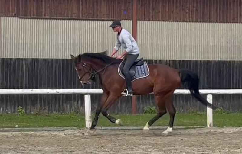 Big Bambi is a 7-year-old gelding with an impressive height of 1.84 meters (16.1 hh) and an equally striking presence. Due to his size and late growth, he was gently and thoughtfully backed only at the age of 4. He is absolutely well-behaved, human-oriented, and uncomplicated in daily handling. Whether grooming, tacking up, or in the stable – Big Bambi impresses with his calm and balanced nature. Under saddle, he consistently demonstrates willingness to work and reliability. He gets along very well with his pasture mates and is social and friendly. In the arena, he shows enthusiasm for work, especially jumping, which he enjoys greatly. At the same time, his harmonious conformation and movement quality make him ideally suited for dressage work. Big Bambi is a horse full of potential, eager to bring joy to his rider – a true partner for ambitious leisure riders or for sport. With a heavy heart, we will only place him in the best and most supportive hands. A home with a family environment and proper appreciation is especially important to us. Serious inquiries are welcome to contact us personally.