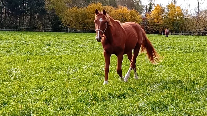 Excelente caballo de color alazán oscuro, descendiente de Selectric y Dream on.