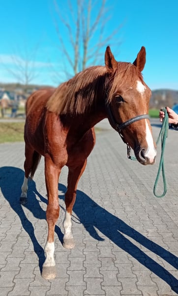 Eleganter Westfale-Hengst, geborene 2024, Dunkelfuchs Vater 174 von Selectric Mutter 164 von Dream on Seine Mutter ist sowohl Dressur als auch Springen gezogen. Er ist kennt alles was man in dem Alter können sollte. Schmied,Wurmkur Anbinden Führen verladen. Alles kein Problem Gut sozialisiert und Menschen bezogen Kann bei Interesse dort stehen bleiben und evtl.auch später angeritten werden Bei Interesse können wir gerne einen Termin zur Besichtigung vereinbaren Besichtigung möglich