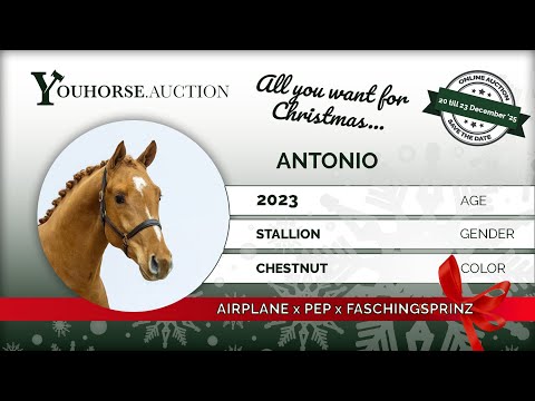 APPROVED AT THE HANNOVERIAN STALLION LICENSING Antonio is a modern-built two-year-old stallion with presence and blood. He moves lightly and elastically and stands out in free jumping with overview, quick reflexes and a strong push-off. He is supple, easy to switch and shows a balanced canter. A young horse with clear talent and serious sport appeal. Antonio was recently presented and approved at the Hanoverian stallion licensing, confirming his correct conformation, modern type and quality. Sire Airplane (Aganix du Seigneur x Centurio) represents athleticism and scope. Grandsire Aganix du Seigneur, himself a 1.60m Grand Prix performer, is known for passing on power, attitude and fast reflexes — all clearly visible in Antonio. The damline is strongly sport-oriented. Dam Pan Am produced several sport horses, including Lysander 130 (1.45m) and Chaccmo RT (1.40m). Further down the line we find approved stallions and multiple 1.30–1.45m level jumpers. Antonio combines modern type, reflexes and balance. An approved young stallion with everything needed to progress to top-level sport.
