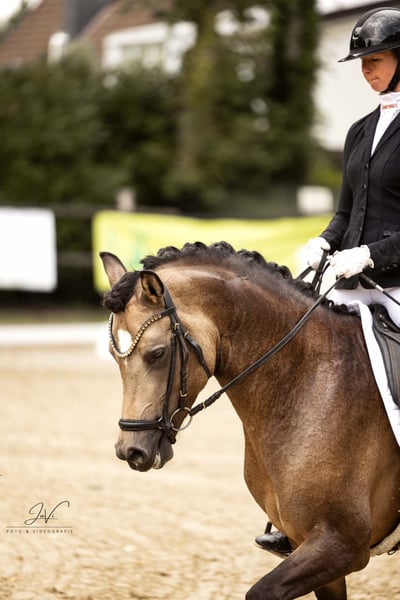 Dieser charmante Hengst besticht durch sein außergewöhnliches Erscheinungsbild und sein freundliches Wesen. Er zeigt bereits viel Talent in der Dressur und hat absolute Championatsqualität! Reitpferde gewonnen gegen Großpferde mit 8,2!!! Er ist gut erzogen, brav im Umgang und hat bereits erste Erfahrungen im Training gesammelt. Er ist wirklich von jedermann zu bedienen und will einfach nur gefallen! Keinerlei Hengstmanieren!!! Bei Interesse oder weiteren Fragen freuen wir uns über Ihre Nachricht! Für das Probereiten berechnen wir eine Gebühr von 50€ , die anschließend beim Kauf angerechnet werden kann!