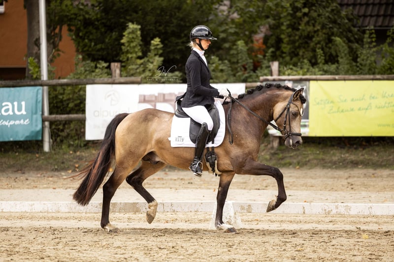 Ten uroczy ogier wyróżnia się wyjątkowym wyglądem i przyjaznym usposobieniem. Już teraz wykazuje duży talent w ujeżdżeniu i ma absolutne predyspozycje na championat! W konkursach skokowych pokonał konie dużej rasy z wynikiem 8,2!!! Jest dobrze wychowany, posłuszny w obsłudze i ma już pierwsze doświadczenia treningowe. Jest naprawdę łatwy w obsłudze dla każdego i po prostu chce się podobać! Żadne zachowania typowe dla ogiera!!! W przypadku zainteresowania lub dodatkowych pytań, prosimy o kontakt! Na jazdę próbną pobieramy opłatę w wysokości 50 €, którą można odliczyć od ceny zakupu!