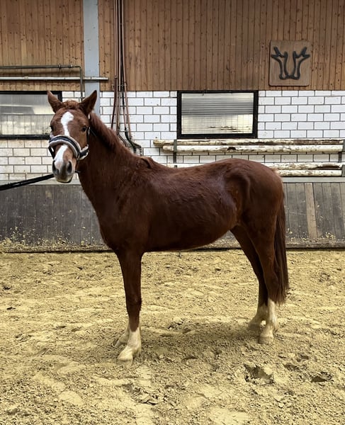 Brav im Umgang, kein beißen, kein treten. Regelmäßig entwurmt und ausgeschnitten. Bereits anlongiert und auch da sehr vorbildlich.