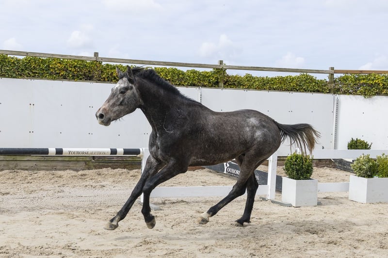 Zeer mooi model met veel uitstraling en een sterke bovenlijn. Beweegt goed in draf en beschikt over een ruime, gebalanceerde galop. Laat een correcte sprong zien met een goede voorbeentechniek en een fijne instelling. Komt voorzichtig over met veel inzet. Door zijn type en manier ook interessant als hunter. Een compleet paard met meerdere mogelijkheden. Vader Hardrock Z – 1.60m Topvererver en Grand Prix hengst met internationale resultaten op het hoogste niveau. Bekend om het doorgeven van vermogen en instelling. Moeder Special Sunrise (v. Special Memories) Geen sportresultaten Moederlijn / stam Grootmoeder Weekends Freya (v. Werther) Uit de moederlijn: – Gavi – 1.60m (goedgekeurde hengst) – Stacy – 1.50m Verder in de stam: – Werther’s Wels – Grand Prix dressuur (goedgekeurde hengst) – Futurus – PSG / Inter I (goedgekeurde hengst) – Show Boy – Inter II (goedgekeurde hengst) Goedgekeurde hengsten in de lijn: – Hardrock Z – Heartbreaker – Nimmerdor – Carthago – Special Memories – Abdullah – Werther Sterke allround prestatiestam met zowel spring- als dressuurprestaties op hoog niveau.