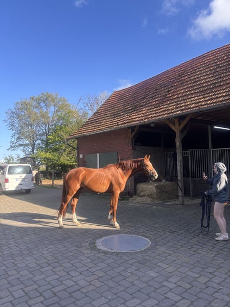 ZumVerkauf steht Donner Karlsson, ein selbstgezogener Hengst abstammend von Diro x El Salvador. Er ist ein großer und sportlicher leichter Typ, der immer gefallen möchte. Aufgrund meines andauerndes Studiums habe ich keine Zeit. Karlchen ist lieb und sehr vermust und läuft gemeinsam mit drei Wallachen in der Herde. Dabei ist er eher rangniedrig. Seinen Stockmaß schätze ich ca auf 172/175 cm. Die Mutter war 180cm, daher denke ich dass er noch weiter wachsen wird. Er lässt sich super verladen, kennt den Hufschmied, kennt Freispringen und ich habe mich bereits mehrmals drüber gelehnt.