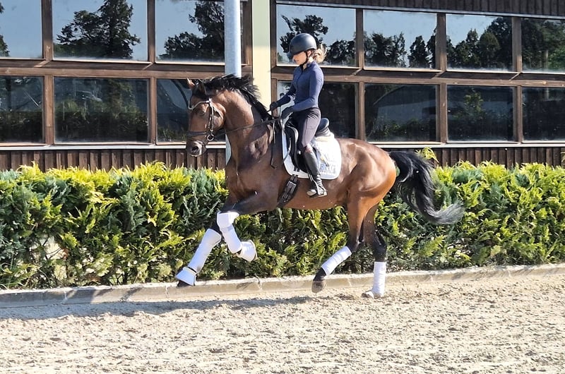 **Na sprzedaż: Wyjątkowy ogier westfalski** Przedstawiamy pięknego ogiera westfalskiego, urodzonego w 2021 roku, o wzroście 167 cm. Ten piękny gniady koń to nie tylko uczta dla oczu, ale także utalentowany sportowiec z obiecującą przyszłością w ujeżdżeniu. Z elegancką sylwetką i łagodnym usposobieniem, jest doskonałym wyborem dla jeźdźców na każdym poziomie zaawansowania. Jego naturalna gracja i płynny ruch sprawiają, że wyróżnia się na arenie, a chęć do nauki zapewnia, że odniesie sukces w treningu. Ten ogier jest dobrze zsocjalizowany i gotowy na nowe wyzwania. Jeśli szukasz konia do rywalizacji, który pomoże Ci awansować na wyższe poziomy, ten przystojny ogier jest idealnym wyborem, aby zaimponować. Ferris posiada zestaw zdjęć rentgenowskich, które nie wykazują żadnych nieprawidłowości, w tym szyi i grzbietu, oraz nie ma wad stajennych. Jest łatwy w obsłudze i odważny. Skontaktuj się z nami, aby uzyskać więcej informacji i umówić się na oględziny!
