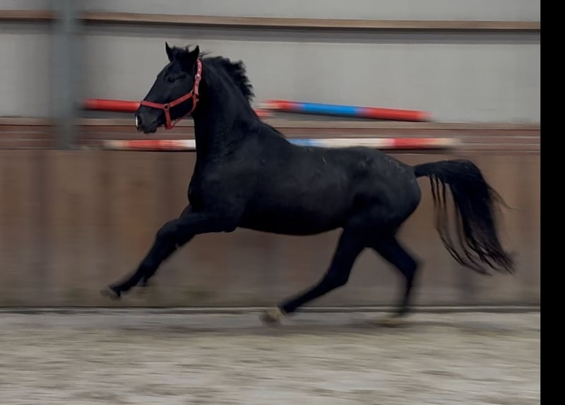 Eye-catching and impressive stallion. Taurus x Freudentänzer. A horse with three strong gaits. He is still green and untrained but very honest in hand. For inquiries, please call or WhatsApp: +31(0)643197337