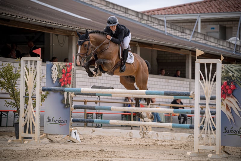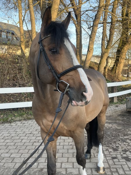 Stensbeck ist ein 8-jähriger gekörter und leistungsgeprüfter Hengst abstammend von Stakkato Gold aus einer Balou du Rouet Mutter. Aus der gleichen Mutter kommen noch vier weitere gekörte Hengste, davon Oak Groves Clown, erfolgreich bis 1,60 und Eldorado de Hus bis 1,45 erfolgreich. Stensbeck selber hat aktuell bis 1,20 gewonnen und Springpferdeprüfungen mit Wertnoten bis 8,5. Er ist brav im Umgang und beim Reiten und hat genau das richtige Maß an Blut. Am Sprung schaut er nach nichts, springt ganz einfache Wechsel und bewegt sich in allen Gangarten sehr gut. Er ist als Springpferd, Hunter und auch Deckhengst interessant. Bei Interesse können Sie sich gerne per WhatsApp oder telefonisch an mich wenden über die 015251655555