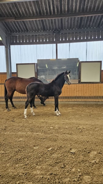 For sale is a colt born on March 23, 2025, sired by the successful dressage sire Danestos out of the mare Landina (by Lissaro x Labrador x Ramiro Z x Paradox). This colt combines high-quality dressage bloodlines with an excellent temperament, correct conformation, and outstanding movement quality. Danestos, a jet-black son of the internationally successful Dante Weltino, impresses with exceptional movement and rideability. He is triple-bred to Donnerhall, emphasizing his genetic predisposition for top-level sport. Danestos has already achieved impressive results in sport: multiple placings in S-class dressage competitions, participation in the qualification for the Nürnberger Burgpokal in 2023 and 2024, and wins up to Intermediaire I level in the 2024 season. Landina, born in 2010, is a daughter of the three-time Bundeschampion Lissaro van de Helle. Her pedigree traces through Labrador, Ramiro Z, and Paradox back to the renowned Westphalian dam line of the Sielhorst Flutwelle. This line has produced over 20 licensed stallions, including Sandro Boy Junior, Primeur’s Ass and Festival, as well as several premium mares in Münster-Handorf. Landina’s offspring have shown promising development, competing successfully up to class L in dressage. Viewings are available by appointment at any time. Videos available upon request.