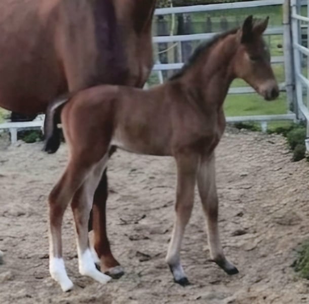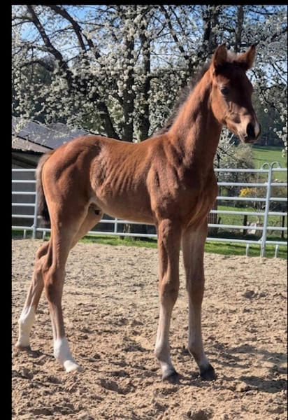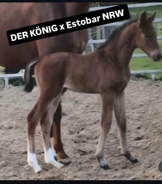 Ein vielversprechendes Hengstfohlen von Der König aus einer Estobar NRW x Alabaster-Mutter steht zum Verkauf. Mit seinem modernen Bewegungsablauf und seiner eleganten Erscheinung bringt es tolle Anlagen für die Zukunft mit.