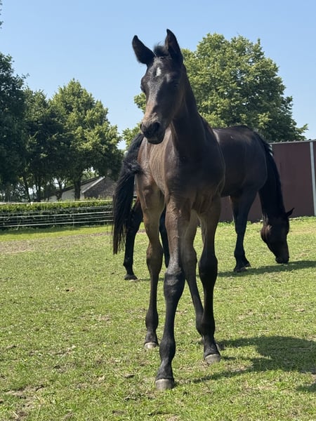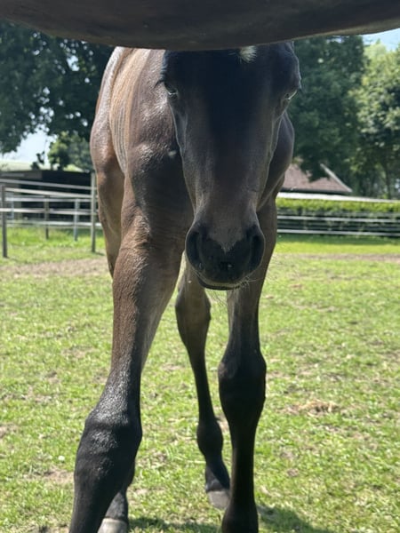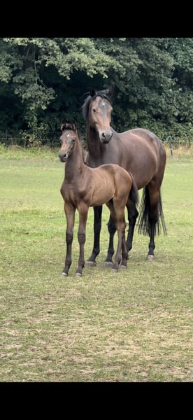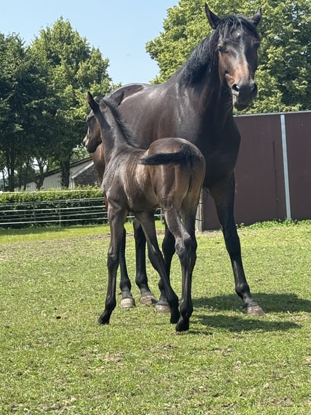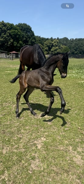 Colt foal by Iowa Gold x Maracana x Rosengold – Exquisitely bred, strong in movement This dark brown colt foal impresses not only with its excellent pedigree but also with its outstanding movement quality. Pedigree Sire: Iowa Gold – modern, sport-tested stallion with top character Dam's sire: Maracana – known for expression, uprightness, and movement dynamics From the dam line of Rosengold, a proven elite stallion with high rideability Maternal elite line The foal comes from a performance-tested, top elite mare line – the best prerequisites for sport and breeding. Movement & Type • Light-footed and elegant • Active, powerful hindquarters • Above-average basic gaits with a lot of cadence • Outstanding movement mechanics