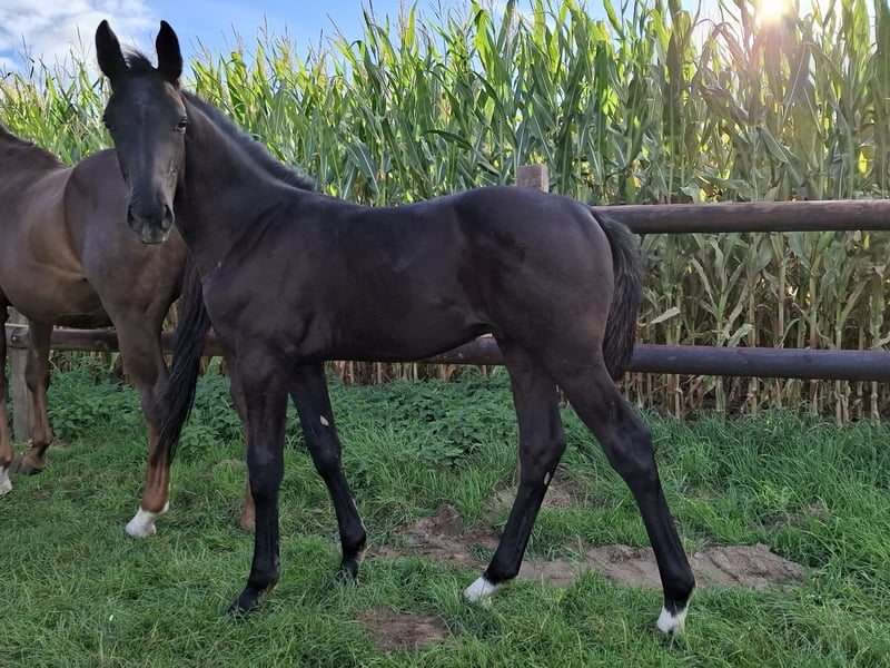 **Verkaufsanzeige: Traumhafter Westfalen Hengst** Zum Verkauf steht ein vielversprechender Westfale Hengst, geboren im Jahr 2025. Dieser elegante Rappe besticht durch seine auffällige Erscheinung und sein ausgeglichenes Temperament. **Merkmale:** - **Rasse:** Westfale - **Geschlecht:** Hengst - **Geburtsjahr:** 2025 - **Farbe:** Rappe - **Einsatzgebiet:** Dressur Unser Hengst zeigt bereits vielversprechende Ansätze in der Dressur und hat das Potenzial, sich in diesem Bereich hervorragend zu entwickeln. Er ist gut erzogen, zeigt sich lernwillig und hat einen freundlichen Charakter, der ihn zu einem idealen Partner für ambitionierte Reiter macht. Bei Interesse oder weiteren Fragen freuen wir uns über Ihre Nachricht! Besuchen Sie uns gerne, um diesen tollen Hengst persönlich kennenzulernen.