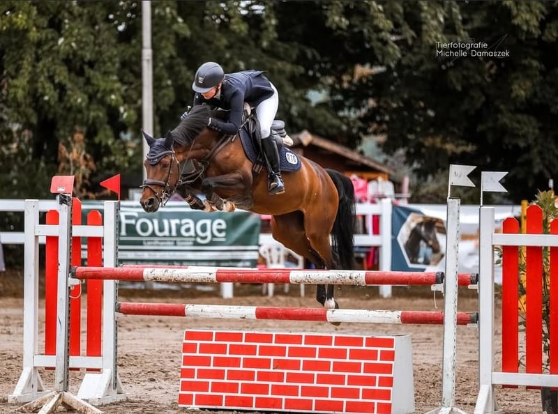 Beautiful little show jumping horse with potential for sale. For sale is a talented Westphalian mare, born in 2015. She presents herself in an elegant dark brown coat and stands at 156 cm. She is well-mannered and easy to ride both on the ground and under saddle, with a spirited temperament. Her friendly and open nature makes her an ideal partner for riders who enjoy show jumping and wish to further develop their skills. The mare is regularly vaccinated and dewormed. She is versatile and can be used both in the field and in the arena, having gained experience at competitions. If you are interested or have any further questions, please feel free to contact me. Viewings are possible by appointment. We look forward to hearing from you!