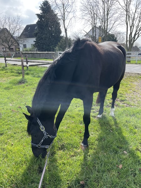 Verkaufe elegante Westfalen-Stute – leider nichts mehr für den Sport! Zum Verkauf steht eine wunderschöne Rappstute, geboren im Jahr 2015. Mit einem Stockmaß von 164 cm vereint sie Größe und Anmut perfekt. Sie war ein hoch talentiertes Dressurpferd, das durch ihre Bewegungsqualität und ihre Bereitschaft beeindruckte. Leider hat sie ein paar klinische Befunden, die ihr keinen Sporteinsatz mehr ermöglichen. Gerne können wir dies telefonisch besprechen. Diese charmante Westfälin ist bestens ausgebildet und zeigt viel Potenzial, auch für Beschäftigungen vom Boden aus. Sie ist freundlich im Umgang, wurde regelmäßig geimpft sowie entwurmt. Sie ist geländesicher, wünscht sich aber einen Reiter mit Erfahrung und feiner Hand. Bei Interesse stehe ich gerne für weitere Informationen und eine Besichtigung zur Verfügung. Bitte nur ernsthafte Anfragen und es sei nochmals betont, die Stute ist kein reines Reitpferd mehr. Abgabe nur in Besthände! Ein tolles Pferd für nicht ambitionierte Reiter, die eine Freundin suchen mit der man nicht nur vom Sattel aus etwas erleben möchte.