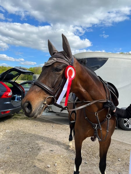 Elegant Westphalian mare for sale – perfect for leisure riders and show jumpers! This beautiful, compact chestnut mare, born in 2015, impresses with her elegant appearance and her enthusiastic jumping nature. She has achieved placings up to class M. The mare is well-trained, eager to learn, and has been in our care since her foaling. Therefore, we can provide very reliable information about her training and behavior. She is trailer-friendly, regularly ridden in the field (also alone), and actively participates in weekly jumping training. Groundwork and lunging are also well-established parts of her routine. The mare is up-to-date on vaccinations and has been regularly checked by both the equine dentist and physiotherapist. We hope she finds a loving new home. If interested, I am happy to provide further information and arrange a viewing.