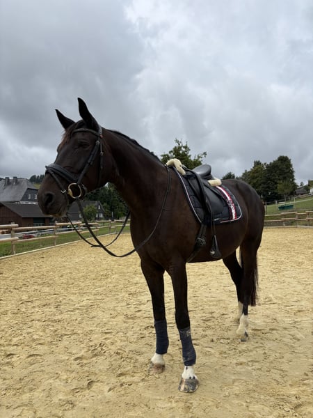 Wir suchen für unsere liebevolle Westfalenstute Frida ein neues Zuhause. Frida ist 10 Jahre alt, stammt von Faveur ab, und begleitet uns bereits seitdem sie drei Jahre alt ist. In dieser Zeit ist sie zu einem echten Familienpferd geworden, das durch ihren Charakter und ihre Vielseitigkeit überzeugt. Frida verfügt über schöne Grundgangarten und wurde bereits auf Turnieren in Dressur und Springen vorgestellt. Aufgrund einer älteren ausgeheilten Verletzung wünschen wir uns für sie jedoch eine Zukunft ohne Springsport. Für die Dressur, das Freizeitreiten oder Ausritte ins Gelände ist sie bestens geeignet. Sie ist geimpft und regelmäßig entwurmt. Ebenso stellen wir unsere Pferde jährlich beim Zahnarzt vor. Da wir Frida zeitlich nicht mehr gerecht werden, wird sie von einem 13-jährigen Mädchen mit geritten. Somit ist sie auch für Jugendliche, jedoch nicht für reine Anfänger geeignet. Aufgrund ihrer Abstammung ist sie für die Zucht bestens geeignet und hatte bereits 2023 ein Fohlen bei uns, was auch bei uns besichtigt werden kann. Im täglichen Umgang ist Frida ein echter Schatz. Sie ist schmiede-, sowie verladefromm und läuft aktuell barhuf. Sie ist mit allem auf unserem Bauernhof vertraut und dabei unerschrocken – sei es Trecker, Kühe oder Hunde. Da sie ganzjährige Weidehaltung in der Herde gewohnt ist, wünschen wir uns für sie auch weiterhin eine Haltung mit denselben Bedingungen. Eine AKU wurde Anfang Dezember (ohne Befund) gemacht. Bei Bedarf kann sämtliches Zubehör mit übernommen werden. Um Reittourismus vorzubeugen, erheben wir eine Gebühr für das Probereiten, die bei einem Kauf angerechnet wird. Frida ist ein Pferd, das man einfach ins Herz schließen muss. Daher gilt für uns: Platz vor Preis!