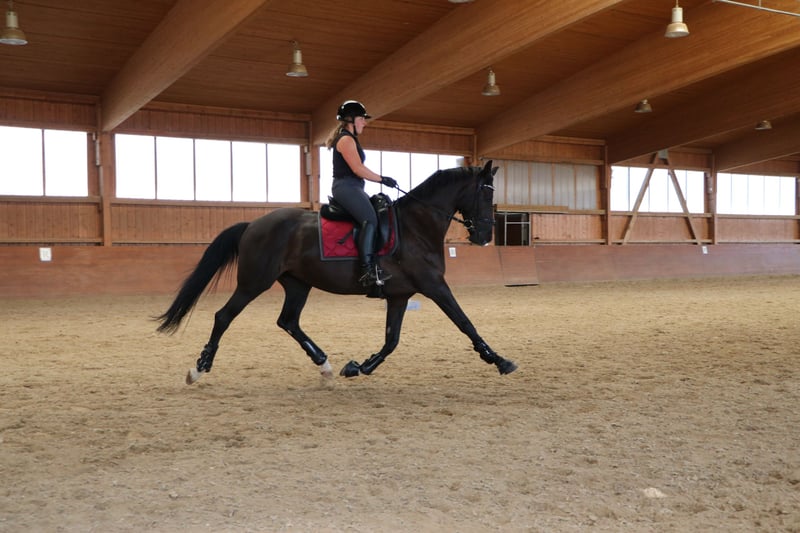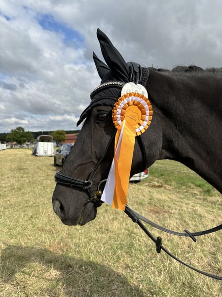Zum Verkauf steht eine talentierte und bereits hocherfolgreiche Dressurstute. Sie ist bestens ausgebildet, sicher in den Lektionen und zeigt sich auf Turnieren nervenstark sowie leistungsbereit. Sie ist sehr elegant und mit genügend Go ausgestattet. Mehrere Platzierungen und Siege in Dressurprüfungen L * und L** unterstreichen ihr Potenzial. Daten im Überblick: - Stute - Alter: 12 - Stockmaß: 1,63 - Ausbildungsstand: L Dressur - Abstammung: Desperados Die Stute ist gesund, regelmäßig geimpft und schmiede- und Verladefromm. Im täglichen Umgang freundlich und menschenbezogen. Sie ist Gelegenheitskopper. Damit hat sie allerdings keinerlei Probleme. Eine AKU kann gerne durchgeführt werden. Sie eignet sich für ambitionierte Amateure und ist in gute Hände abzugeben. Preis: 18.000€ Standort: Großlangheim Bei ernsthaftem Interesse freuen wir uns über Ihre Nachricht oder einen persönlichen Kontakt.