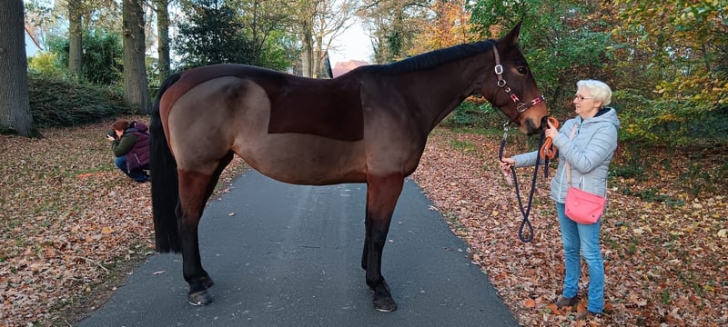 Ich verkaufe hier, aufgrund des Zeitmangels, meine 12 jährige Westfalen Stute Lilly. Lilly ist im Springen und der Dressur bis A-Niveau geritten. Ich habe sie selber bis dorthin ausgebildet, arbeite mit ihr jedoch eher im Freizeitbereich mit ihr. Sie lässt sich super longieren, macht sehr gerne Freiarbeit/Bodenarbeit, geht gerne spazieren und ist ein zuverlässiger Partner im Gelände, der weder Angst vor Wild, Autos, etc. hat. Turniermäßig ist sie bei mir nur wenige Male vorgestellt worden, hat dies aber mit einer unglaublichen Ruhe und Entspanntheit mitgemacht. Sie kennt Kinder, Hunde, Hühner, etc. und hat mit diesen keine Probleme. Auch Fuchsjagden und Orientierungsritte mit Spielen vom Pferd aus findet sie toll und ist eifrig mit dabei. Lilly lässt sich von einem erfahrenen Reiter gut reiten und hat noch nie bewusst den Reiter abgebockt oder sonstiges. Sie ist sehr gut und fein an den Hilfen ausgebildet und verlangt vom Reiter, dass dieser sie entsprechend korrekt gibt. Lilly ist vom Charakter her eine typische Stute mit der man wissen muss, wie man mit ihr umzugehen hat. Entsprechend fragt sie gerne gewisse Dinge immer wieder nach. Ein Reiter mit wenig Selbstbewusstsein oder Erfahrung, sowohl im Umgang mit Pferden als auch beim Reiten, sind daher nicht für sie geeignet. Lilly hatte bei dem Vorbesitzer bereits ein Fohlen und hat dieses vorbildlich herangezogen. (Sie ist daher bereits im Stutbuch registriert) Sie steht aktuell in einer reinen Stutengruppe und ist dort die Leitstute. Sie kennt aber auch gemischte Herden und ist sehr gut sozialisiert und nicht aggressiv oder „unfair“ anderen Pferden gegenüber. Wer Interesse an Lilly hat darf sich gerne bei mir melden und bekommt weitere Infos, Fotos und Videos von ihr. Ein zur Verfügung stellen würde nur unter idealen Vorraussetzungen infrage kommen und wird vorher abgeklärt und festgehalten! Lilly wird nur in beste Hände und nach mehrfachem Kennenlernen abgegeben. Sie ist regelmäßig gegen Influenza und Herpes geimpft und entwurmt. Sie ist zurzeit 4fach beschlagen (Ausreitgelände nur Straße) kommt aber auch Barhuf klar.