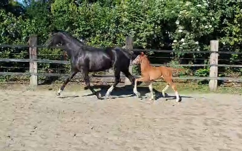 De Niro Zuchtstute zu verkaufen. Die 12-jährige Verbandsprämienstute, De Niro – Weltmeyer – Absinth, Rappe, ist ein echtes Zuchtjuwel. Sie ist die Vollschwester zum vielfachen Grand Prix (EM/WM) erfolgreichen Delgado. Sie ist tragend vom Hengst Robert De Niro Junior. Weitere Geschwister sind der S* siegreiche Hotmeyer (Hotline-Weltmeyer, der gekörte Hengst Schumacher (Stedinger-Weltmeyer), der S* siegreiche Jazzmeyer (Jazzmate-Weltmeyer). Aus der Schwester Sommermärchen (Sir Donnerhall I-Weltmeyer) stammt der gekörte Hengst Future Me BC, (First Deal-Weltmeyer). In den Videos zu sehen ihr Stutfohlen von Emiliano aus 2024 und ihr Hengstfohlen von Emiliano aus 2025. Ein Erfolgsstamm par exelence. Bei Interesse bitte direkt den Züchter Wilhelm Lambardt kontaktieren. Telefon +49 170 4403960, Standort Hamm
