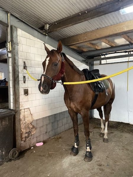 It is with a heavy heart that I am putting my lovely mare Deep Sea Devil W (Dipsy) up for sale Dipsy is a spirited, sensitive mare with three good gaits and excellent conformation. To be honest, she’s a real gem for the right rider. She can do anything. Dressage (previously L2), a bit of jumping, trail rides including beach rides, cross-country, pole work, working equitation, bareback and neck rope – nothing is too much for her. Dipsy loves to go out with you and enjoys being outdoors the most; she is less keen on competitions. For the right rider, Dipsy is honest under saddle, but she has a strong character and makes that clear. She needs a consistent, calm and confident rider, someone who gives her the reassurance she requires. When stressed or uncertain, she can become reserved, which is why she is not suitable for a novice or insecure rider. Dipsy is extremely well-behaved when handled. She can do groundwork, work on long reins and be lunged. Thanks to regular fear-desensitisation training, she is not easily frightened by anything. She is easy with the farrier and wares sheoes. Vaccinations and dental check-ups are always kept up to date. The saddler visits regularly, and she also receives regular treatment from a physiotherapist and osteopath. She travels alone or with another horse on the trailer. Are you someone who can see past her sensitive outside? Then you’ll gain a fantastic companion in return, one you’ll enjoy working with every day with immense pleasure and pride. Dipsy is only going to the perfect 5⭐️ home where she’ll be allowed to stay for a very long time. No dealers or resellers.