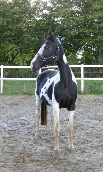 A special offer! Iluminada A - 13-year-old Westphalian mare by Ismo x Shakespeare x Potsdam NRW, height 167 cm. Ilu is homozygous tobiano (so every foal will be spotted), not bred in 2025. She has already produced sport-successful offspring.