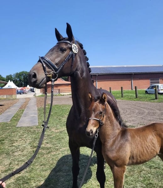 Zum Verkauf steht meine fast 13-jährige (25. April 2013 geboren) Verbandsprämienstute. Pippa 26 Würde sie auch ggf. Bei einem passenden Angebot gegen einen Wallach oder Stute tauschen ( auch roh ab Jährlingsalter ). Ich wollte Pippa für mich als Freizeitpferd wieder fertig machen, jedoch ist hierbei aufgefallen das sich dies als sehr schwierig gestaltet. Genaueres gerne am Telefon. KEIN Befund! Sie war die letzten 6 Jahre als Zuchtstute im Einsatz (jetzt ein Jahr ohne Fohlen). Das letzte Fohlen von 2025 goldprämiert. Fohlen siehe Fotos. Davor war Sie im Sport unterwegs L-Springen, A-Dressur und A-Gelände. Sehr gute Grundgangarten. Sie wird als reine Zuchtstute verkauft! Von meiner Seite aus als nicht reitbar zum Verkauf angeboten! Rasse Westfale Größe 170 cm Abstammung siehe Foto Mir fällt es echt schwer Pippa wieder abgeben zu müssen jedoch habe ich ein Pferd zum Reiten gesucht. Pippa ist ein ehrliches und herzensgutes Pferd, was immer händelbar und kopfklar ist vom Boden aus. Vom Boden aus haben wir uns die letzten 6 Monate sehr viel erarbeitet. Selbst von Kindern (12 Jahre alt) kann sie geführt werden. Spaziergänge alleine im Gelände sind kein Problem. Sie hat einen ganz tollen Charakter und versteht sich mit jedem Pferd, egal ob Stute oder Wallach. Sie steht in einer gemischten Herde von Shetty bis Großpferd. Sie ist den ganzen Tag über draußen und nachts in der Box. Ich wünsche mir für Pippa ein zu Hause für immer. Kein Notverkauf !!! Bei Interesse gerne anrufen oder eine Nachricht mit den Kontaktdaten schicken. Videos können gerne per Whats App geschickt werden (Longe, Reiten, Freilauf).