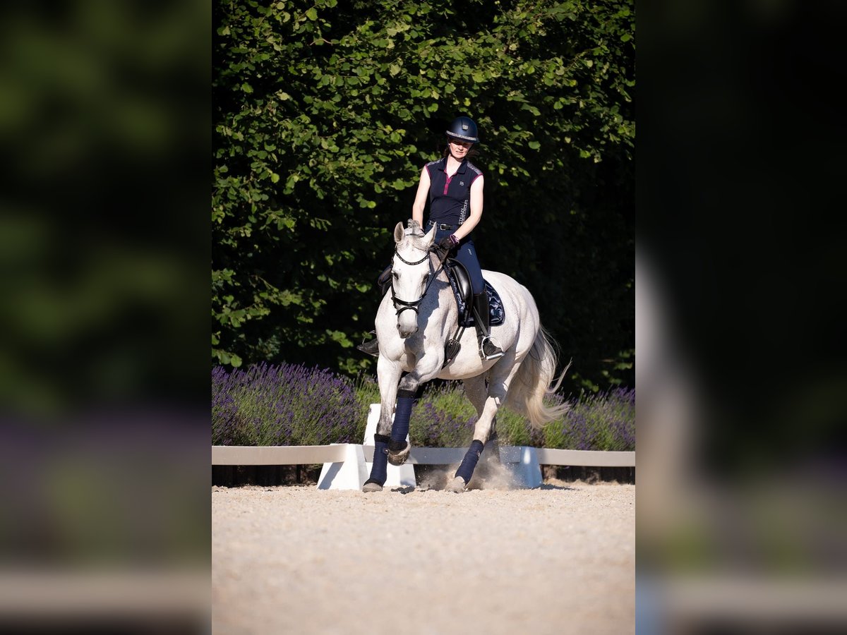 We are looking for a new home for our 13-year-old gray mare. She suffered an injury to her suspensory ligament earlier this year but is now gradually returning to light work in trot. We are offering her as conditionally rideable, with her veterinarian giving a favorable prognosis that, after gentle retraining, she can be used again for leisure riding. Due to her competition successes and her calm, uncomplicated nature, she could also be considered as a broodmare. She has not foaled yet. Pedigree: Cathanos (by Carthago) x Aldato (by Alme). She has been successful in A** show jumping, placed in L, and competed in M show jumping, as well as placed in A* dressage. She is an amateur-friendly horse and also calmly accepts draw reins when ridden by less experienced riders. Farrier- and loading-friendly, currently shod four times a year, approximately 1.73 m at the withers. No sale on installment plans or leasing options. For further information, please contact us privately. Initially, please send a message, as we are difficult to reach by phone.