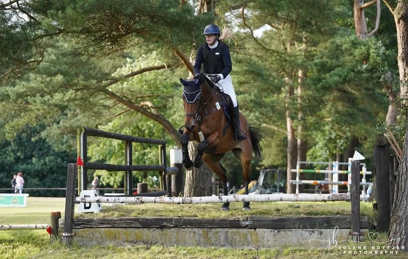 Ik verkoop mijn merrie om persoonlijke redenen. Ze is geboren in 2012 en heeft een schofthoogte van 180 cm. Ik heb haar gekocht toen ze 8 jaar oud was. Ze heeft me door de ruiterexamens gedragen en heeft me begeleid van E tot A** springen, waarbij ze A** geplaatst is. Ook heeft ze met mij terreinproeven tot 80 cm gelopen. Een merrie die altijd naar de andere kant wil. Voor mij is het belangrijk dat ze een thuis voor het leven krijgt! Ze is me echt heel belangrijk en mag geen wisseltrofee worden. Ook geschikt om door kinderen bereden te worden. Halsring, zonder zadel rijden is allemaal geen probleem. Een paard om van te houden en plezier mee te hebben! Ze gaat zelfstandig op de trailer, ook vrachtwagen rijden is geen probleem. Bij de smid en in de omgang verder een schat. Geen aanvragen van handelaren alstublieft. Vanwege haar goede afstamming is ze ook interessant voor de fokkerij. Vader Valeron, moedervader Landor S. Accessoires kunnen tegen betaling worden aangeschaft.