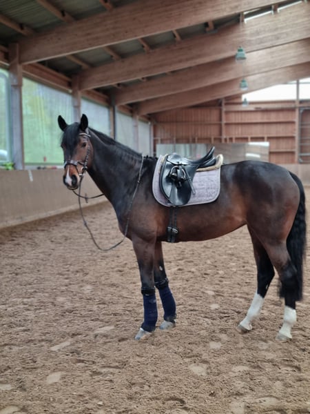Zum Verkauf steht eine 2012 geborene, elegante Stute mit sportlicher Abstammung Arpeggio x Charisma I. Sie hat ein geschätztes Stockmaß von ca. 1,67 m und überzeugt durch Vermögen, Vorsicht und Rittigkeit. Die Stute ist erfolgreich bis M** platziert und hat Springprüfungen bis 140 cm absolviert. In der Dressur ist sie bis Klasse L platziert und somit vielseitig einsetzbar. Besonders hervorzuheben ist ihr zuverlässiger Charakter im Umgang: Sie ist kinderlieb, brav im täglichen Handling und für jeden Spaß zu haben. Sie wurde im letzten Jahr von einem 16-jährigen Mädchen vorgestellt und ist in E- und A-Springprüfungen platziert. Zudem hat sie ihre Reiterin sehr zuverlässig und ruhig durch die Abzeichenprüfung getragen, was ihre Ehrlichkeit und Verlässlichkeit unterstreicht. Im Stall und beim Handling zeigt sie sich vorbildlich: Verladefromm Hufschmied problemlos Charakterlich ist sie sehr sensibel und daher eher ein Ein-Personen-Pferd, das bei einer festen Bezugsperson ihr volles Potenzial entfaltet. Sie eignet sich ideal für ambitionierte Reiter, die ein feines, leistungsbereites Sportpferd mit Herz suchen.