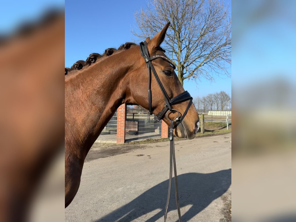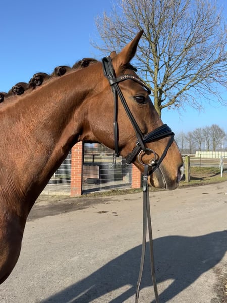 Zum Verkauf steht eine ca. 1,70m große Fuchsstute. Celerina (Chagall x Davignion) ist 14 Jahre und bis L- Dressur ausgebildet und A- Dressur platziert. Sie ist leichtrittig und unkompliziert bei der Arbeit. Geht gerne auch mal zur Abwechslung eine Runde ins Gelände. Geeignet für den Turnierreiter, wie auch für den Freizeitreiter. Sie bereitet jeden Tag Freude und ist dem Menschen sehr zugewandt. Aufgrund eines kleinen Befundes deutlich unter Wert. Video kann auf Anfrage verschickt werden.