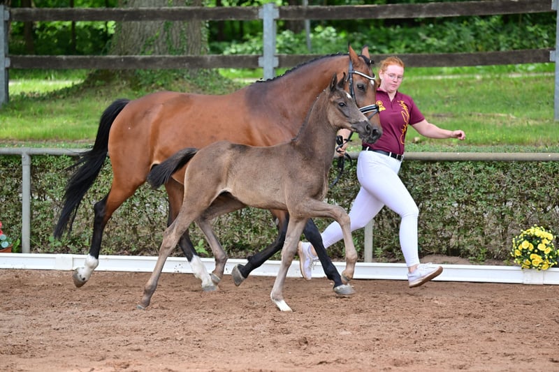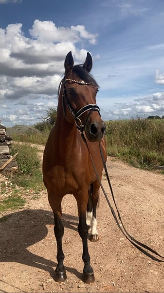 Gute Zuchtstute, gut im Umgang, eher Rang hoch in der Herde, Hatte nach Turnier Karriere bisher 3 Fohlen, eins behalten, eins in Hengstaufzucht (siehe Bild) und eins nach Spanien verkauft. Sehr guter Mutterstamm. https://www.horsetelex.de/horses/pedigree/2229899/amica Im letzten Jahr für 8 Wochen geritten, dabei zunächst eifrig jedoch bei Lektion ab Klasse L ist sie in die Blockade gegangen und wir haben sie wieder in Ruhe gelassen.