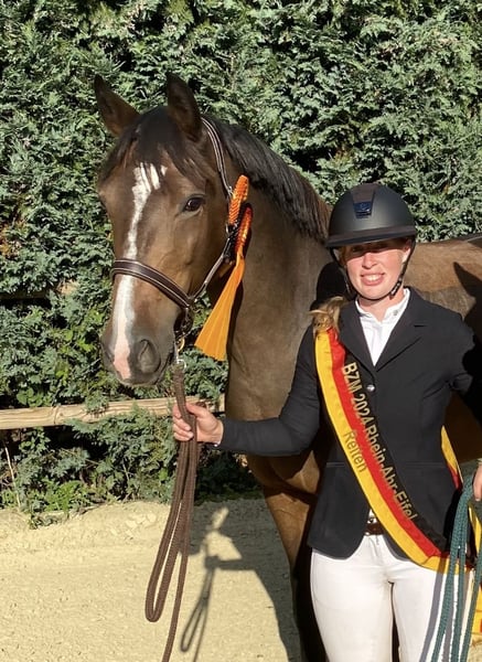 Verkaufe meine super brave und unkomplizierte Stute in beste Hände. Die Stute hat mich von A bis M Springen erfolgreich begleitet. Unter anderem verdanke ich ihr in 2024 den Bezirksmeister Team Springen und in 2025 Bezirksmeister Einzelwertung Leistungsklasse 3 Springen mit Sportlerehrungen. Sie springt alle Untersteller, jedes Wasser und versucht aus jeder Lebenslage alles möglich zu machen. Sie geht alleine ins Gelände, in der Gruppe und kennt Anhänger und Transporter. Alles in allem eine ganz unkomplizierte Stute ohne irgendwelche bekannten Mängel oder Unarten. Der Preis ist verhandelbar, mir ist das zu Hause am wichtigsten jedoch bitten wir zu beachten, dass es ein solches Pferd nicht an jeder Ecke gibt. Die Stute wird nur verkauft weil wir genug Nachwuchs im Stall stehen haben. Infos erfragen Sie bitte ausschließlich telefonisch unter 01605656844.